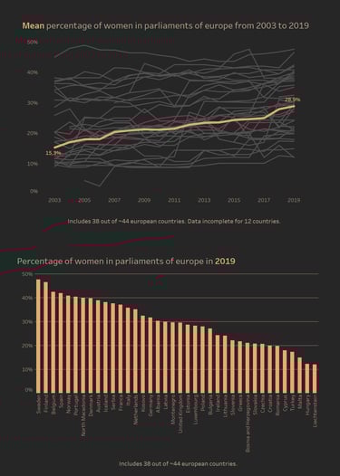 Et udvalg af mine datavisualiseringer, med forskellige formål og formater, produceret i BI-værktøjet Tableau.